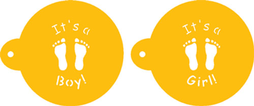 | Description | Two baby footprint It's A Boy and It's A Girl stencils which are perfect for creating cookies for a baby showers. Each stencil measures 2.8"H x 1.6" W or 7cm x 4 cm and fits within 3.5" or 8.75 cm circle. The stencils are made of durable 10 mil food grade plastic for high-quality, professional, repeat use. These stencils are also available in a smaller size (C190) which fit within a 1.5" or 3.75 cm circle. How to apply: