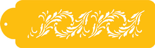 | Description | This beautiful feathered scroll border measures 2.5" H x 10"W and is made of durable 10 mil food grade plastic for high-quality, professional, repeat use. This side border design can be combined with our Feather Scroll Corner design (C161) to create an elegant cake. |