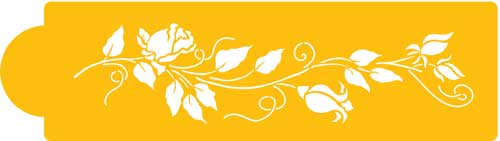 The stencil measures 2.75"H x 10.9"W or 27.25 x 6.875 cm and is cut out of 10 mil, durable food-grade plastic.
