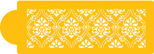 The bottom tier from our Royal Damask Set measures 4.25"H x 12.75"W or 10.63 cm H x 31.88 cm W. It is made from durable, 10 mil food-grade plastic.