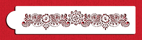| Description | Is it lace or is it henna? Which ever you think it is, this pattern is exquisite. Measures 2" h x 10.6" w and is precision laser-cut from food-grade plastic for repeated use.