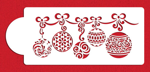| Description | Make a festive cake for your holiday table using our Christmas Ball Ornament Swag. Solid royal icing or painted with colorful powders - it is sure to impress your guests! Stencil measures 3.8" H x 9"W (balls range from 14" to 2.2") and precision cut from durable 10 mil food grade plastic. |