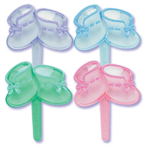 Baby booties are typical icon for celebrating baby showers. Perfect to just stick them into cupcakes as a gift out at the party.