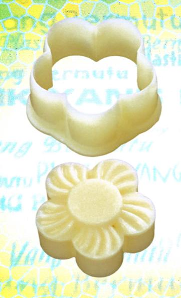 Made of plastic. 1 cutter with double sided embossers. Able to use for fondant, marzipan, and choc. modeling.