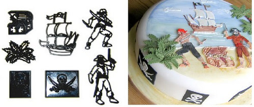 | Description | These cutters can be used for both embossing and cutting. To used them as an emboss you just need to press down the cutters on the covered icing cakes. And to use them as a cutter, you need to rolled as thin as possible so they are able to cut neatly. Cover the cutters with vegetable shortening or corn starch before using. The size for Main Pirate is 11 x 3 cm |