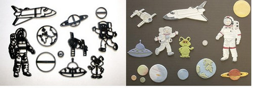 | Description | These cutters can be used for both embossing and cutting. To used them as an emboss you just need to press down the cutters on the covered icing cakes. And to use them as a cutter, you need to rolled as thin as possible so they are able to cut neatly. Cover the cutters with vegetable shortening or corn starch before using. The size of large Spaceman is 12 cm |