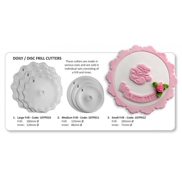 They are made of plastic. Large Frill diameter 160 mm and inner 120 mm. Can be mix and match with other cutter.