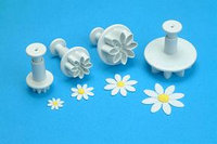 | Description | PME Daisy Marguerite Plunger Cutter Set/4 consists of 4 cutters: Mini, Small, Medium, and Large cutters made from plastic and is easy to clean. Cutters come with a spring back action. Sizes are: 13mm, 20mm, 27mm, and 35mm |