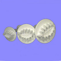 | Description | Effective way of creating realistic flowers. This set of 3 deep veined Holly Leaf plunger cutters are extremely easy to use and produces excellent results. Simply press cut and eject. Made from strong food-grade plastic with aluminum spring mechanisms |