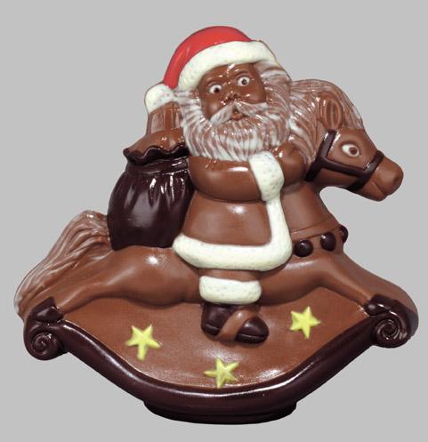 CHOCO.MOLD SANTA W/ ROCKING HORSE 17 CM