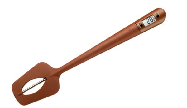 Thermo Choc, from the EasyChoc range, is a silicon mould complete with thermometer for the monitoring of the temperature (0C to 200 C) of melted chocolate, cream, sauces, jams, syrups and italian meringues. Dimensions: 320 x 70 mm