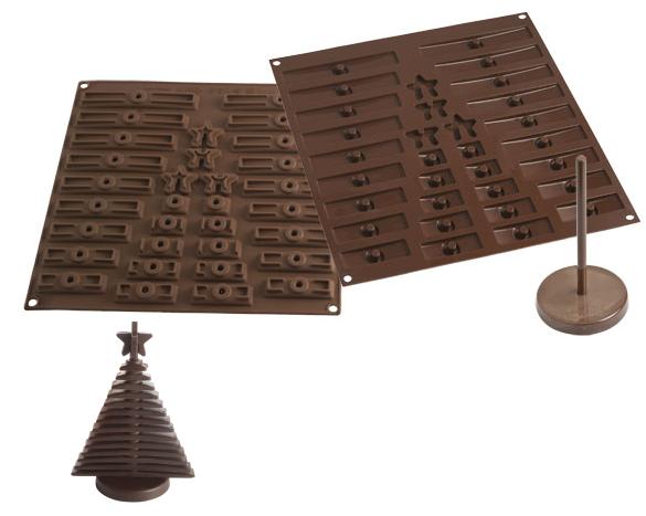 Silicone for making a Christmas Tree from chocolate. Package includine: 2 pillars, 2 base and a set of 2 silicone mold