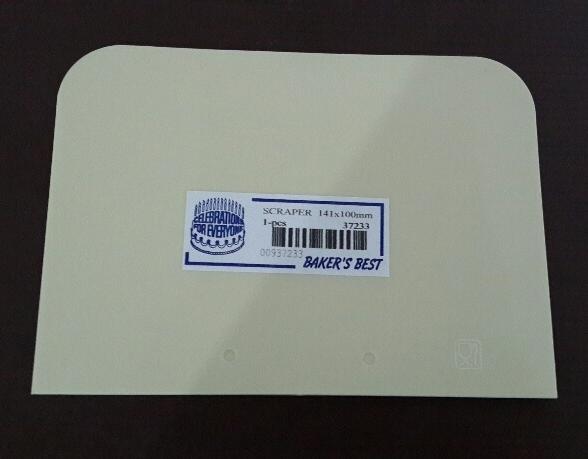 Use to cut dough and scrap dough, chocolate, and so on. Made of plastic with size 141 x 100 mm