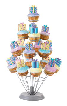 | Description | Individually decorated cupcakes are the perfect way to add a personal touch to celebrations. Now, with Cupcakes 'N More, you have the perfect way to serve them! The look is fresh and fun, featuring bold silver-finished wire spirals to securely hold each cupcake. The twisting, towering design is perfect for any setting-showers, kids' birthdays, weddings, holidays and more. 18 in. high x 12 in. wide. Easy to assemble! Just stack each layer of cupcakes onto the locking center rod. |