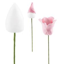 | Description | Plastic bases let you wrap around a strip of gum paste to form the perfect rose base. Bottom opening for adding florist wire. Includes 12 each 1 x .5 in. and 1.125 x .75 in. |