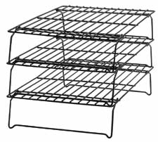 The size is 15 7/8 x 9 7/8 in. Its non-stick stackable 3-tier grid.