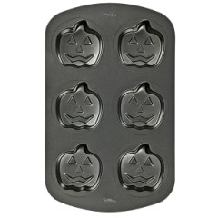 Bake fun single-size cakes, brownies and more. Non-stick steel releases treats easily. Each Jack O Lantern is 3.75 x 1.25 in. deep or 9.375 x 3.125 cm deep.