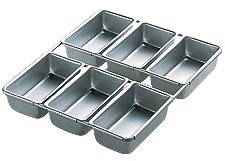 Six cavities are 4 1/2 x 2 1/2 x 1 1/2 in. deep or 11.25 x 6.25 x 3.75 cm deep