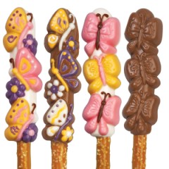 Easy to mold: position pretzel rod, add your favorite melted chocolate and refrigerate to set.