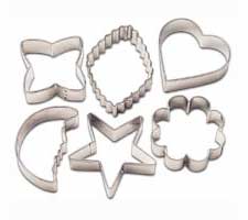 A cookie shape for every occasion. Includes geometric, crinkle diamond, flower, half moon, heart, and star cutters.