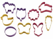 | Description | Springtime colors add a fresh look to your kitchen and fun to your baking. Lamb, chick, tulip, flower, bunny, egg, butterfly, bunny face and carrot cutters are approx. 3 in. |
