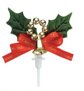 HOLLY PICKS WITH BELL & RIBBON - 5.5 X 3.5 CM