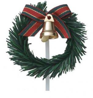 MINI WREATH PICKS W/ RIBBON & BELL - 6 X 5.5 CM