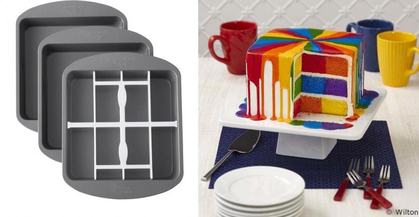 | Description | Simple or spectacular on the outside, always surprisingly beautiful on the inside, the checkerboard cake is party favorite. Use the Square Checkerboard Cake Pan Set to bake multi-colored cake layers. The secret is the specially sized batter dividing grid. Just insert it into the pan, follow the coloring grid instructions. Remove and repeat with your next two layers. Experiment with color and flavor combinations using Color Right Performance Color System and Treatology Flavor Concentrates (sold seperately). Infuse cake batter and buttercream with gourmet flavors, like Crisp Champagne or Juicy Peach.