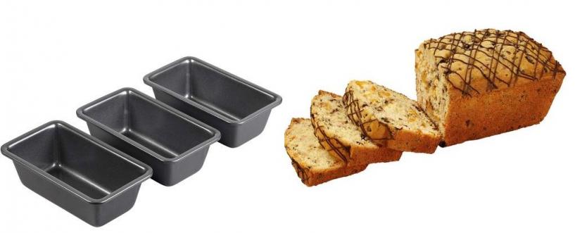| Description | Speed up your baking, especially when you're baking for gift-giving, by using the 3-Pc. Mini Loaf Pan Set. Mini loaf pans are perfect for when you want to prepare multiple loaves at a time - having three pans reduces your time in the kitchen. The non-stick coating on the pan means the loaves will be easy to remove from the pan without breaking. Whether you're baking something sweet, like banana bread, or something herbed and cheese-filled, these pans will be perfect for those smaller loaves. Pans measure 5.75 in. x 3 in. x 2 in. (14,6 cm x 7,62 cm x 5,08 cm).