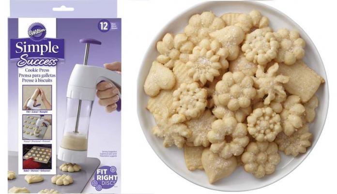 | Description | Use this classic cookie press to make uniform spritz cookie shapes. The upgraded comfort of an ergonomic handle feels great in your hand, and the soft-touch trigger provides added control and comfort. Ultra-clear barrel lets you know when the dough is low. Comes with 12 cookie discs, including all of the classic spritz cookie shapes, plus several new ones (like the pumpkin, turkey, dot pattern, and doily).