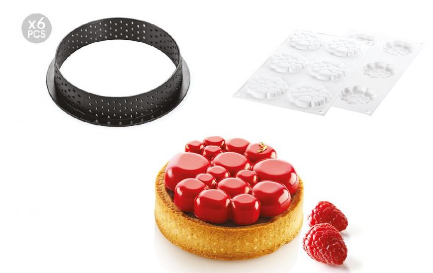| Description | Silicone is cold and heat resistance from -60 to 230 degree Celsius, where as the ring can stand until 180 degree Celsius. The unique technique created by MOF Pâtissier Guillaume Mabilleau finds its expression in the new Kit Tarte Ring Paradis Ø 80 mm by Silikomart Professional. The kit is composed by two elements: six rings with a 80 mm diameter in thermoplastic composite crush-proof material suitable for baking and creating the base and a silicone mold with 6 cavities of Ø 70 h 11 mm each to make a mousse or a cremoso to lay over the shortcrust base. The rings are non-stick and stainless, they allow an homogenous baking and they are characterized by a high thermal stability. Mold size: Ø70 h11 mm Ring size: Ø80 h20 mm Mold vol.:37 ml x 6 tot. 222 ml |