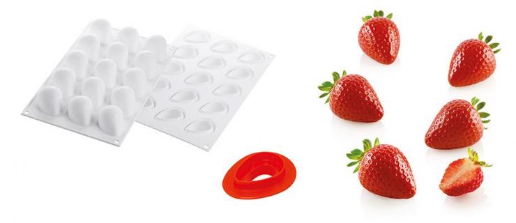 | Description | Silicone is cold and heat resistance from -60 to 230 degree Celsius Impossible to resist to the strawberry, the fruit that anticipates the sunny season with its bright red color and its delicate and unmistakable scent. The mold is provided with 15 cavities of 30 ml each and a practical double use cutter for creating base and inserts. FRAGOLA30 is the exclusive Silikomart Professional mold designed in every single detail that allows to faithfully re-create the 3D shape of fruit. Mold size:48 x 37 h33 mm Mold vol.: 30 ml x 15 Tot 450 ml |
