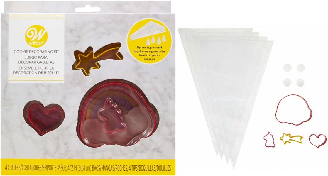 | Description | Make cute cookies in fun shapes with this unicorn cookie decorating kit! Great for birthdays or themed parties, this kit is fun for kids (and adults) of all ages! Includes one standard cutter in the shape of a cloud and three mini cutters: a heart, a unicorn and a shooting star. This kit also includes four 12 in. decorating bags and 4 plastic tips for easy decorating! |