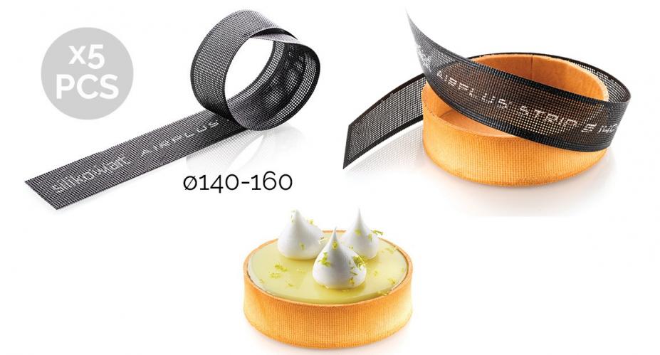 | Description | Practical and functional micro-perforated strips ideal for baking shortcrust pastry for tarts and leavened pastry. Airplus Strips take advantage of the fiberglass technology, which makes the strips completely non-stick. The micro-holes allow a uniform diffusion of the heat for a perfect baking and an quick unmolding without the necessity of greasing them. The strips are washable and reusable. 5 pcs set. Temperature range: -60°C +230°C |