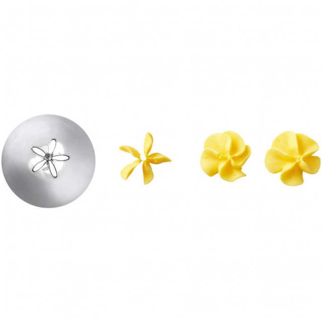 | Description | Impress your friends with perfectly pretty flowers. This decorating tip pipes drop flowers, swirls, rosettes and stars with ease for beautifully decorated cakes, cupcakes and cookies. A great tool for any decorator. Works with standard decorating bags and large sized coupler. Stainless steel tip is engraved with its number for easy identification and will hold up to years of use. Top-rack dishwasher safe. Specifications: