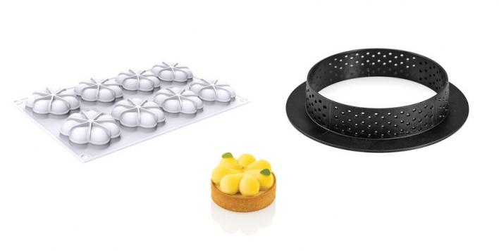 Description The kit is composed by two elements: 8 rings with a 70 mm diameter in oven-ready Tplus+ material and a silicone mold with a 67 mm diameter providing the creation of mousses or creams to be layed over the short crusts. The rings are non-stick and stainless, providing homogeneous baking and high thermal stability.