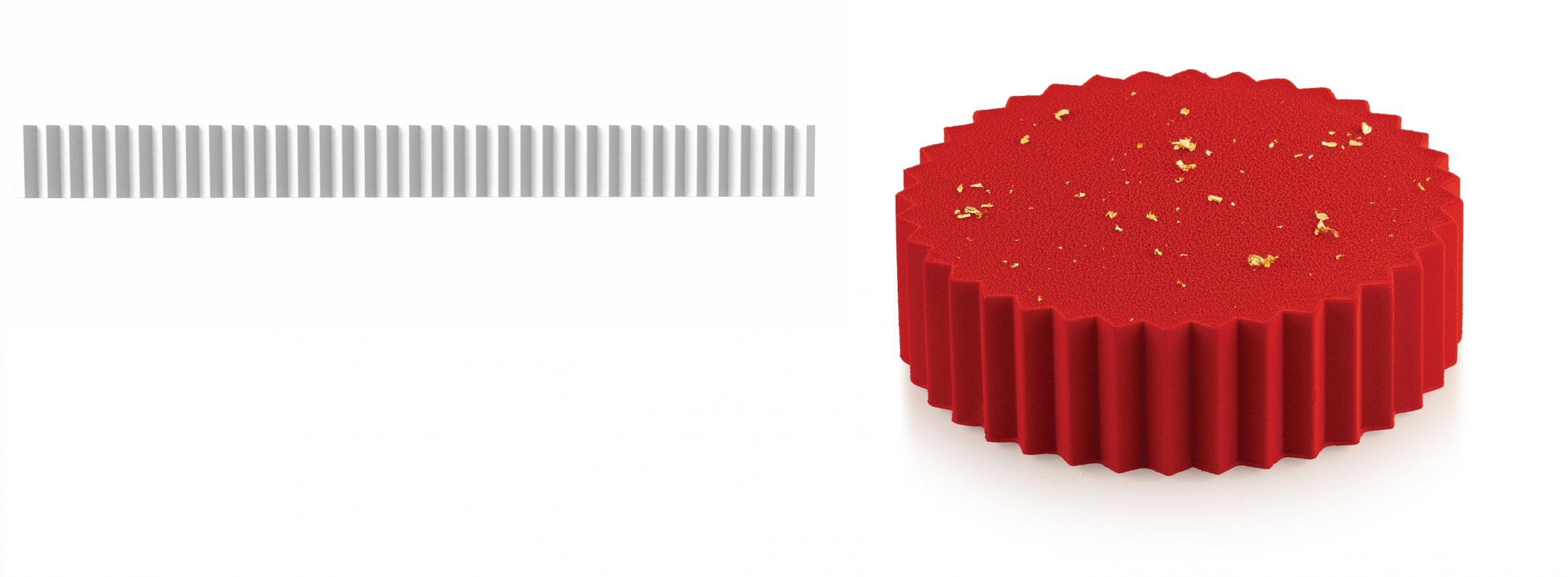 This mold, you can place to any our plain silicone mold / any rings you have at your kitchen and place it for the sides, it gives motifs and possible for any of your cakes. The range diameter is between 11.5 to 18 cm