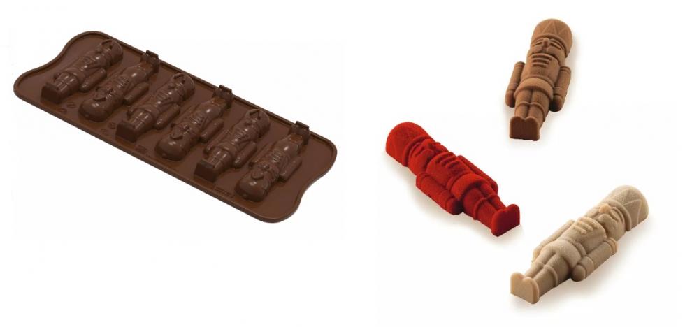 | Description | Platinum silicone mould perfect for creating beautiful chocolates in the shape of the iconic nutcracker soldier. It is very easy to use: just melt some chocolate and pour it into the mould. The chocolates will be shiny and you will impress with a few simple steps. For an alternative use, try it with ice as well. Size: 26x84 h 14 mm | 1.02x3.31 h 0.55''. Volume: 13.5 ml/0.45 oz |