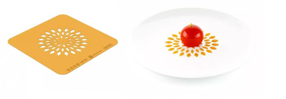 | Description | Stencil Fiore Di Loto is the new stencil developed in collaboration with Chef Pâtissier Titouan Claudet for quick and perfect decorations for plated desserts or savoury preparations. The stencils, made of ultra-fine platinum silicone, allow you to create service-proof decorations in one easy step. How to use: place the stencil on the plate, spread a gel or cream with the help of a spatula and remove the stencil. The pack contains 2 stencils. Stencil size: 160x160 h 1 mm/6.29x6.29 h 0.04'' Decoration size: ø100 h 1 mm/ø3.94 h 0.04'' |